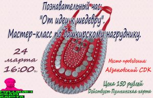 Познавательный час: “От идеи к шедевру”. Мастер-класс по башкирскому нагруднику.