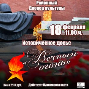 Познавательный час «Историческое досье: Вечный огонь» 18 февраля 2025 в 11:00 200 руб. Районный Дворец культуры