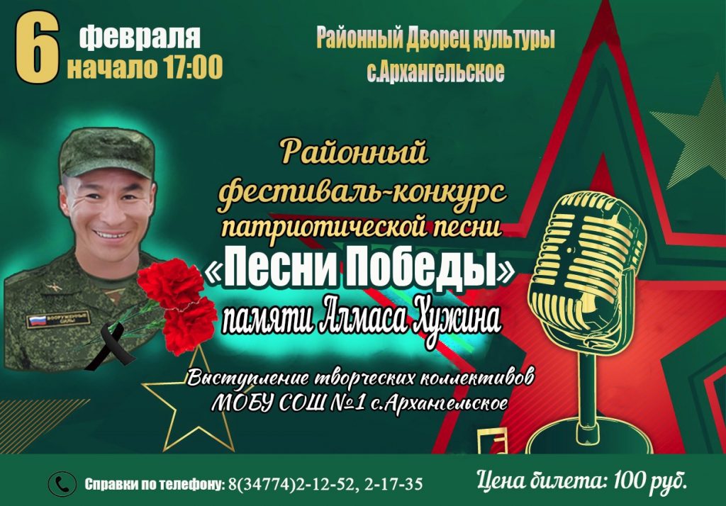 Выступление творческих коллективов МОБУ СОШ №1 с. Архангельское в рамках районного фестиваля-конкурса патриотической песни “Песни Победы” 6 февраля 2025 в 17:00 100 руб. МБУК РДК