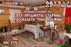Познавательный час “Что предметы старины рассказать тебе должны” 29 июля 2023 в 17:00 200 руб. Успенский СК
