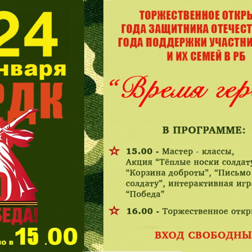 Дорогие соотечественники! Приглашаем вас на торжественное открытие Года защитника Отечества в Российской Федерации и Года поддержки участников специальной военной операции и ...