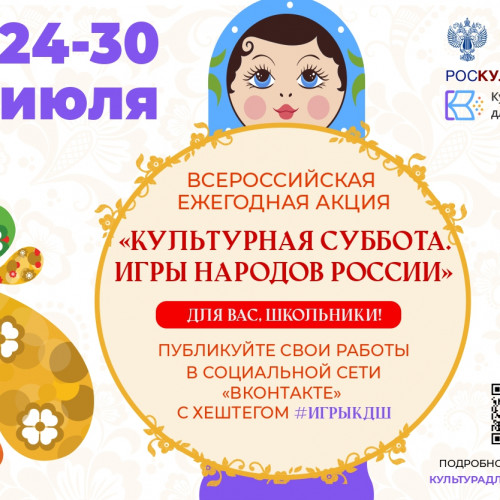 С 24 по 30 июля культурно-досуговые учреждения района приняли участие в ежегодной акции «Культурная суббота. Игры нардов России» в рамках проекта «Культура для школьников». Акция ...