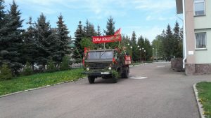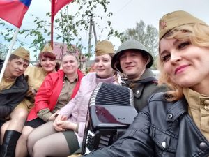 В честь праздника по улицам с.Архангельское прошлась фронтовая машина с творческими коллективами РДК. Они исполнили военные песни и песни о любви к Родине.
