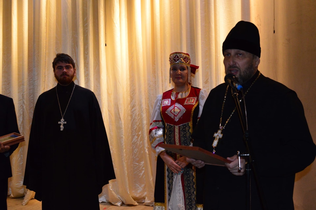Секретарь совета Муниципального района Архангельский район Юртумбаев Фаиз Фатихович поздравил отца Евгения с юбилейной датой 30-летия с иерейской хиротонии и вручил Благодарственное Письмо Благочинному Архангельского округа настоятелю Михаило-Архангельского храма протоиерею Евгению Коробкову «За многолетний плодотворный труд священнической деятельности, за укрепление межнациональных и межконфессиональных отношений в муниципальном районе личный пример веротерпимости, за морально-духовную поддержку населения района и деловое сотрудничество с органами местного управления». Далее мероприятие продолжился большим концертом с элементами театрализации, оригинальными декорациями, выставками. На сцене свои таланты продемонстрировали народный хор русской песни «Заряница», детский фольклорный ансамбль «Златоцвет» (рук.Егорова Е.А.), казачий хор «Таволга» (рук.И.Г.Трезе), дуэт Егорова Е.А. и Лежнева Е.Н., народный академический хор (рук.Пинягина И.Ю.), детский танцевальный коллектив ДШИ (рук.Абдуллина Э.А.).