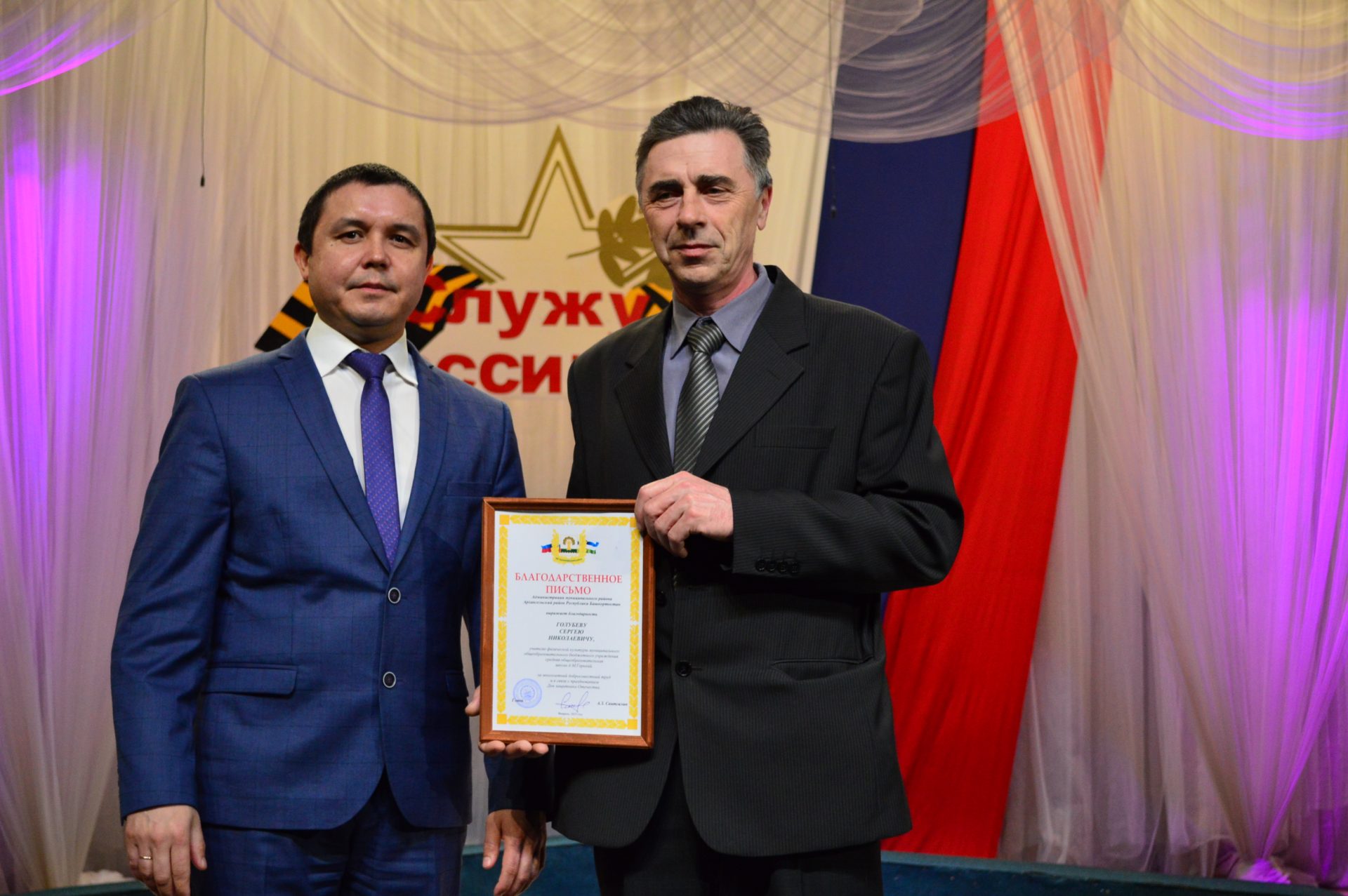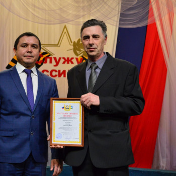 В ходе торжественной церемонии благодарственным письмом   Верховного главнокомандующего Вооруженными силами РФ Владимира Путина был награжден рядовой Москалев Александр Сергеевич. Награду присудили «за образцовое выполнение боевых заданий командования и заслуги в исполнении воинского долга». Также были вручены  благодарственные письма за многолетний добросовестный труд и  связи с празднованием Дня защитника Отечества.