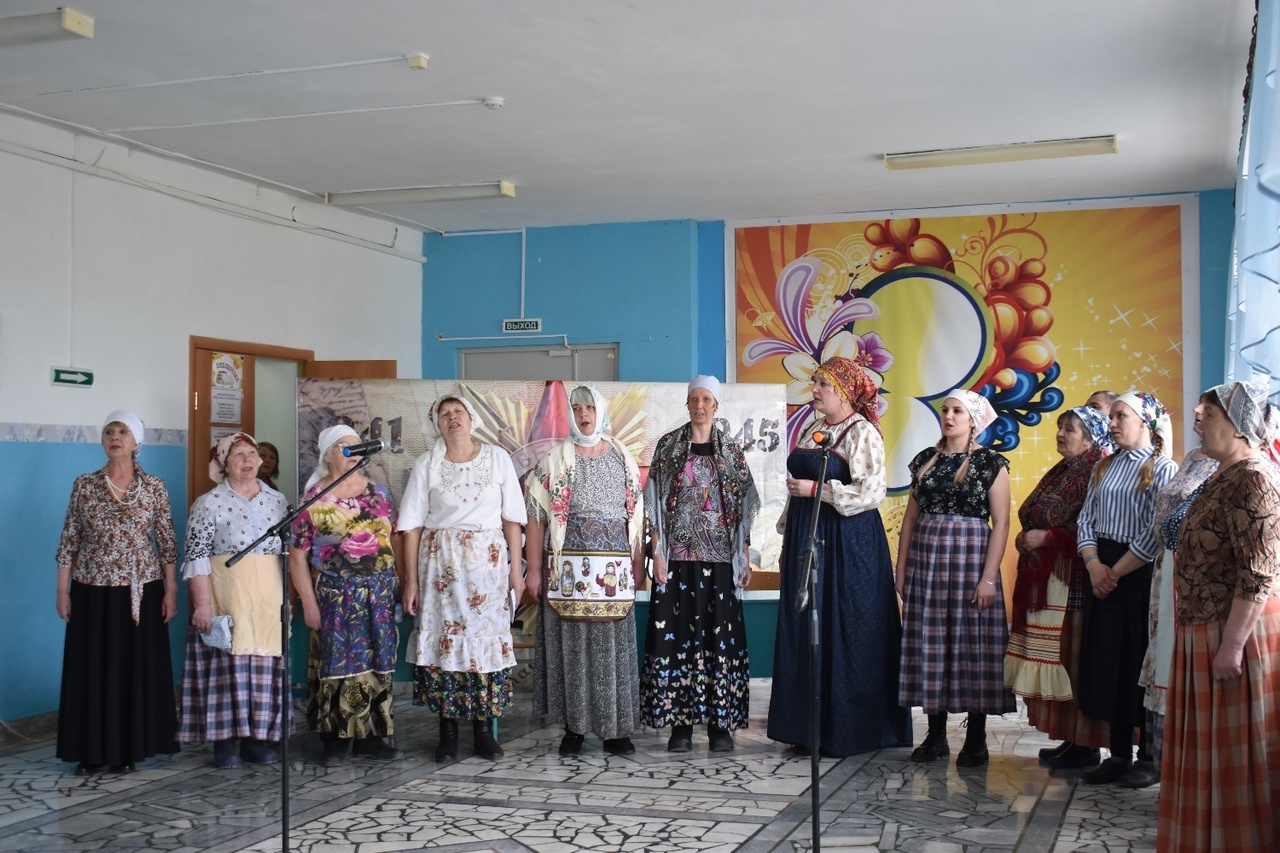 В программе концерта прозвучали известные песни военных лет в исполнении народного хора русской песни «Берегиня» Валентиновского сельского Дома культуры, фольклорного коллектива «Шанкарав» Казанского сельского Дома культуры и солистов.