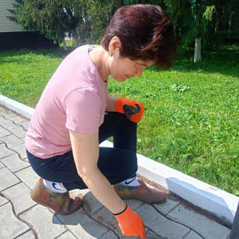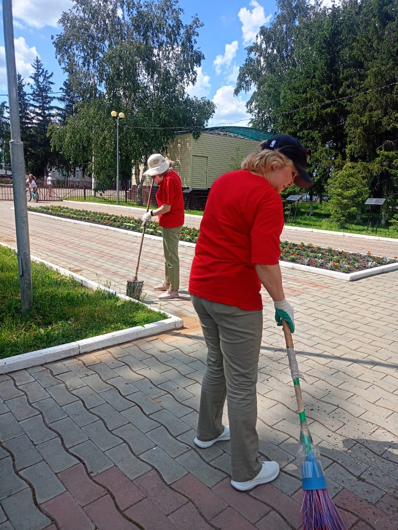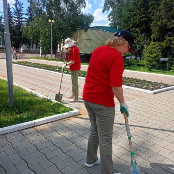 Сотрудники Районного Дворца культуры с особым вниманием привели в порядок территорию вокруг своего учреждения. Они очистили цветочные клумбы и брусчатку от сорняков, убрали мусор и подмели дорожки.