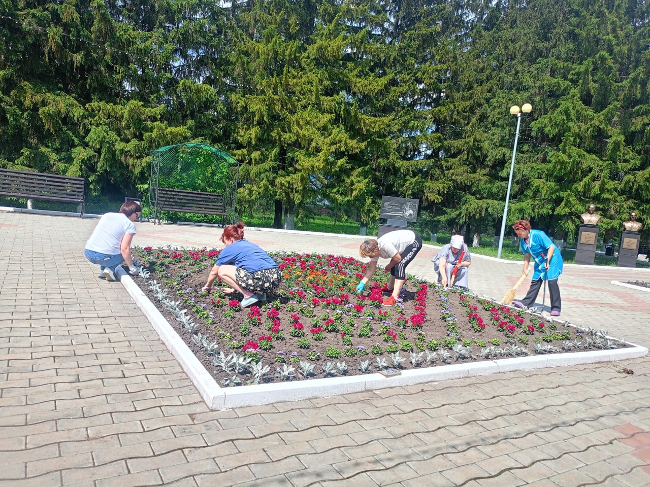 Цветочные клумбы, которые заросли травой, преобразились. Сотрудники Дворца культуры бережно очистили их от сорняков. Теперь клумбы радуют глаз яркими красками и создают уютную атмосферу.