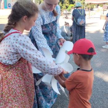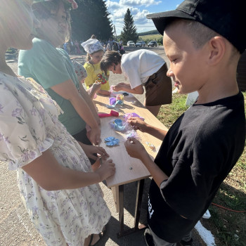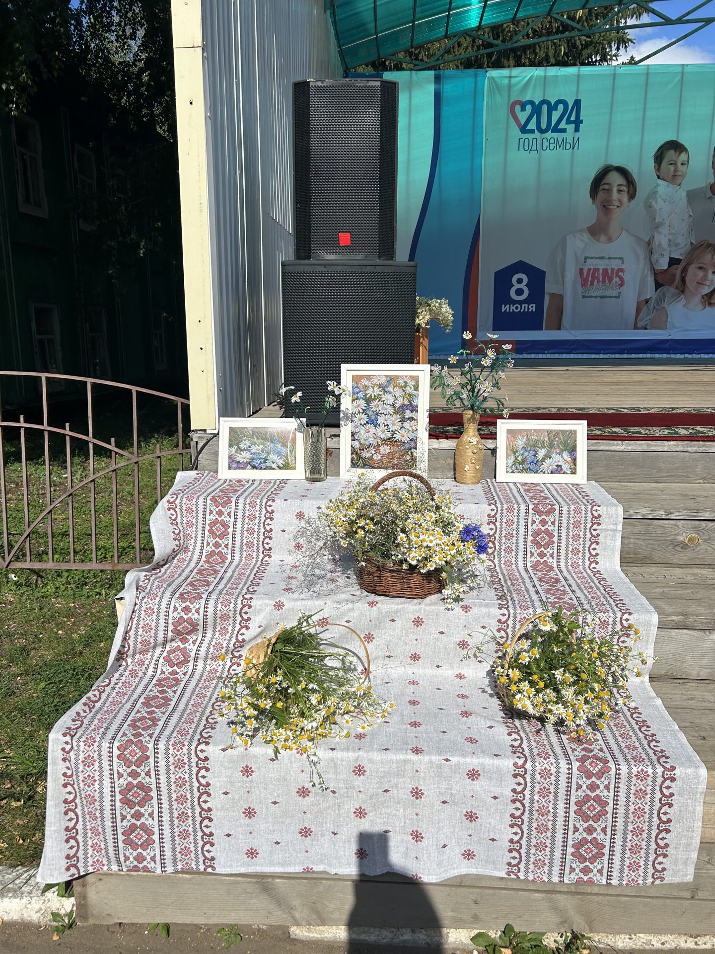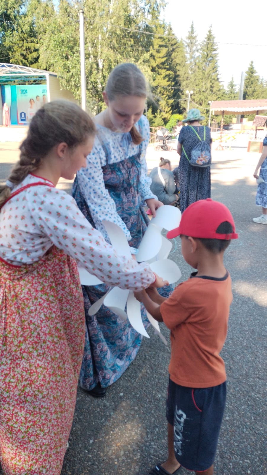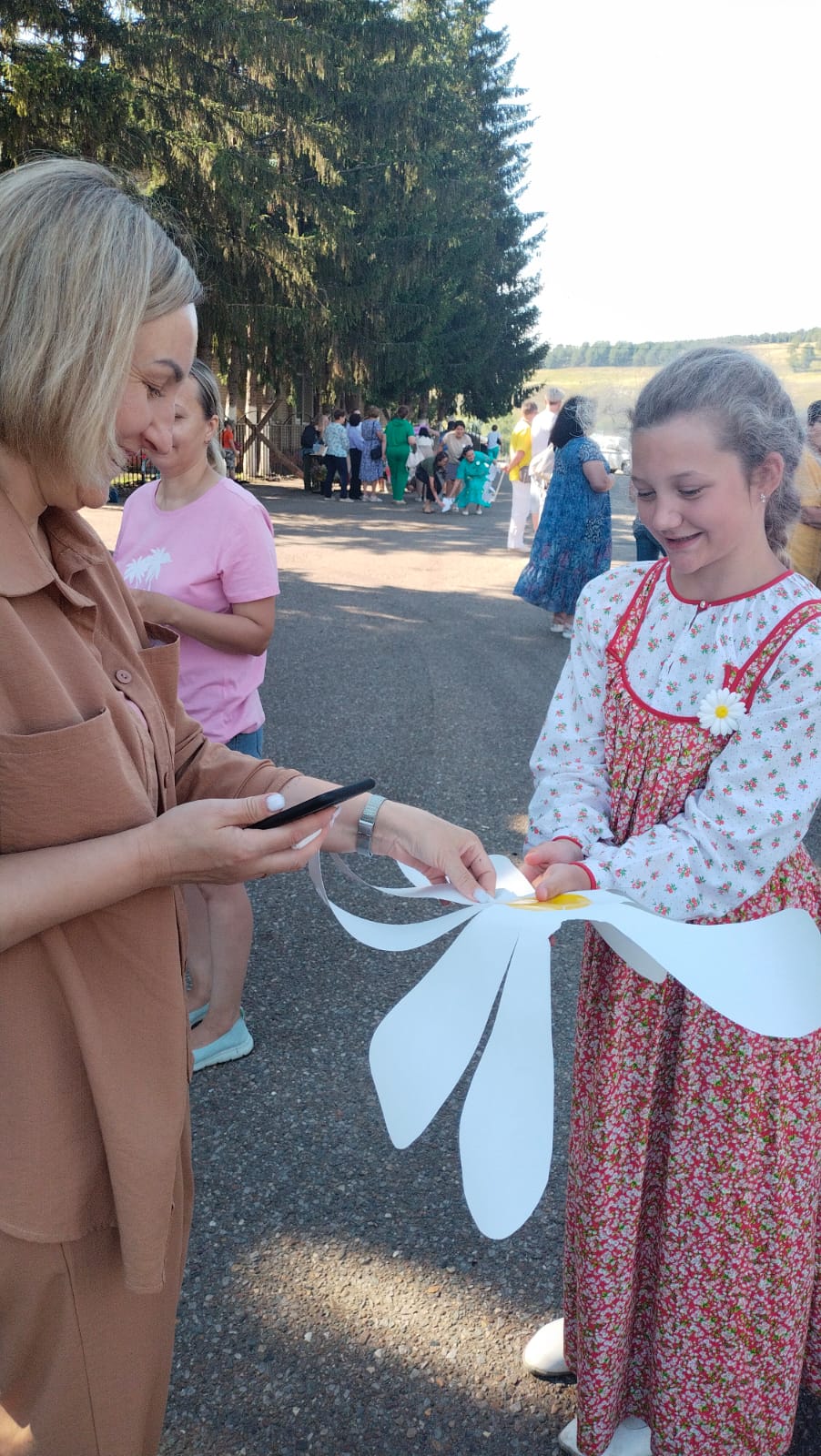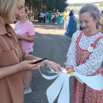 Кроме концертной программы, на площади работали интерактивные площадки: мастер-классы по творчеству и рукоделию, тематическая фотозона, розыгрыш лотереи. Проводилась уличная акция “Ромашка в ладошках”, организаторы дарили жителям села ромашки, которые являются символом этого праздника. Кроме того, была организована площадка, где желающие могли получить предсказание из ромашек. Волонтеры загадывали желание и отрывали лепестки у ромашки, приговаривая: “Любит – не любит”.