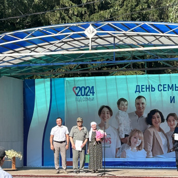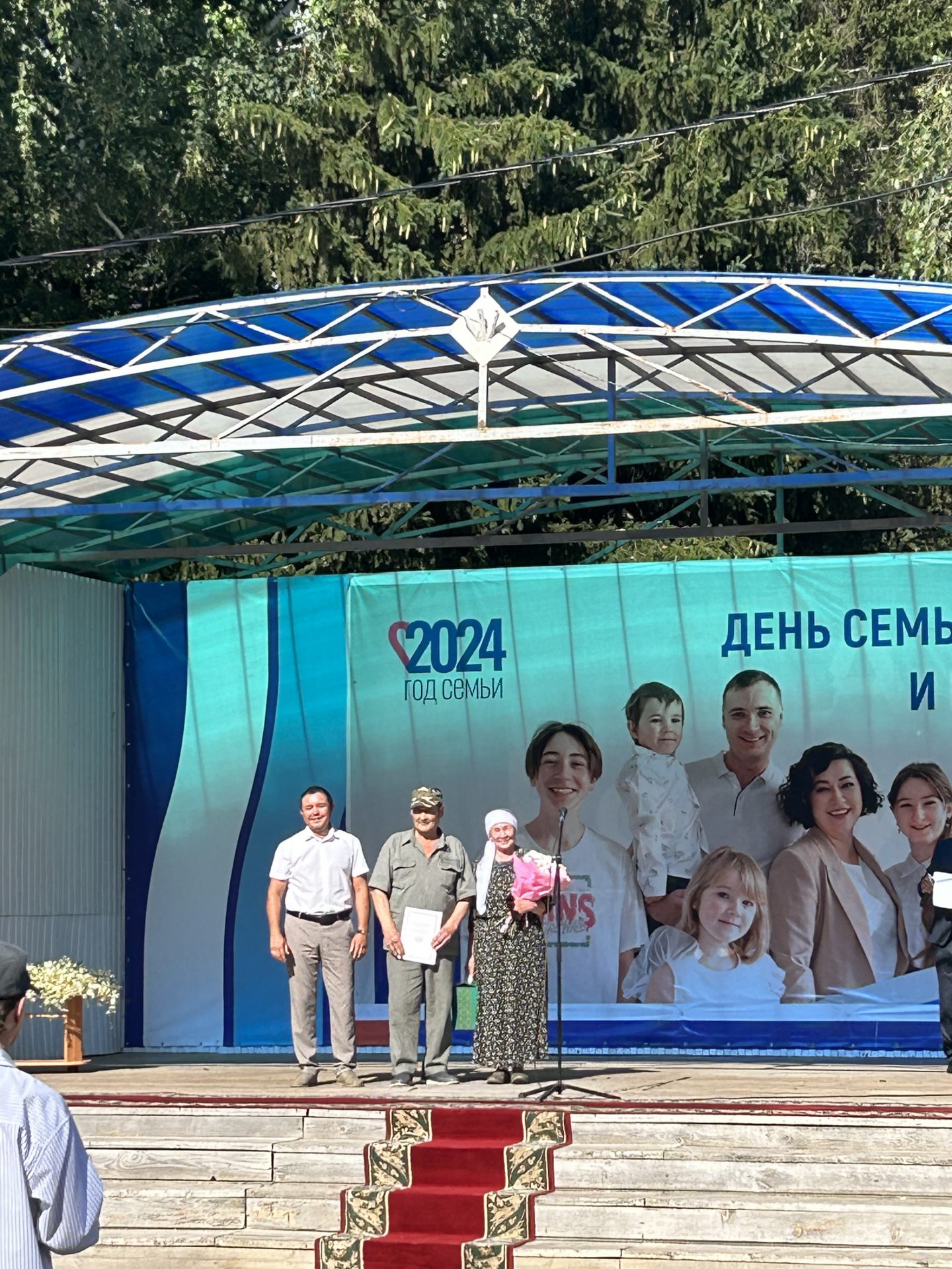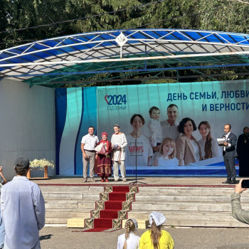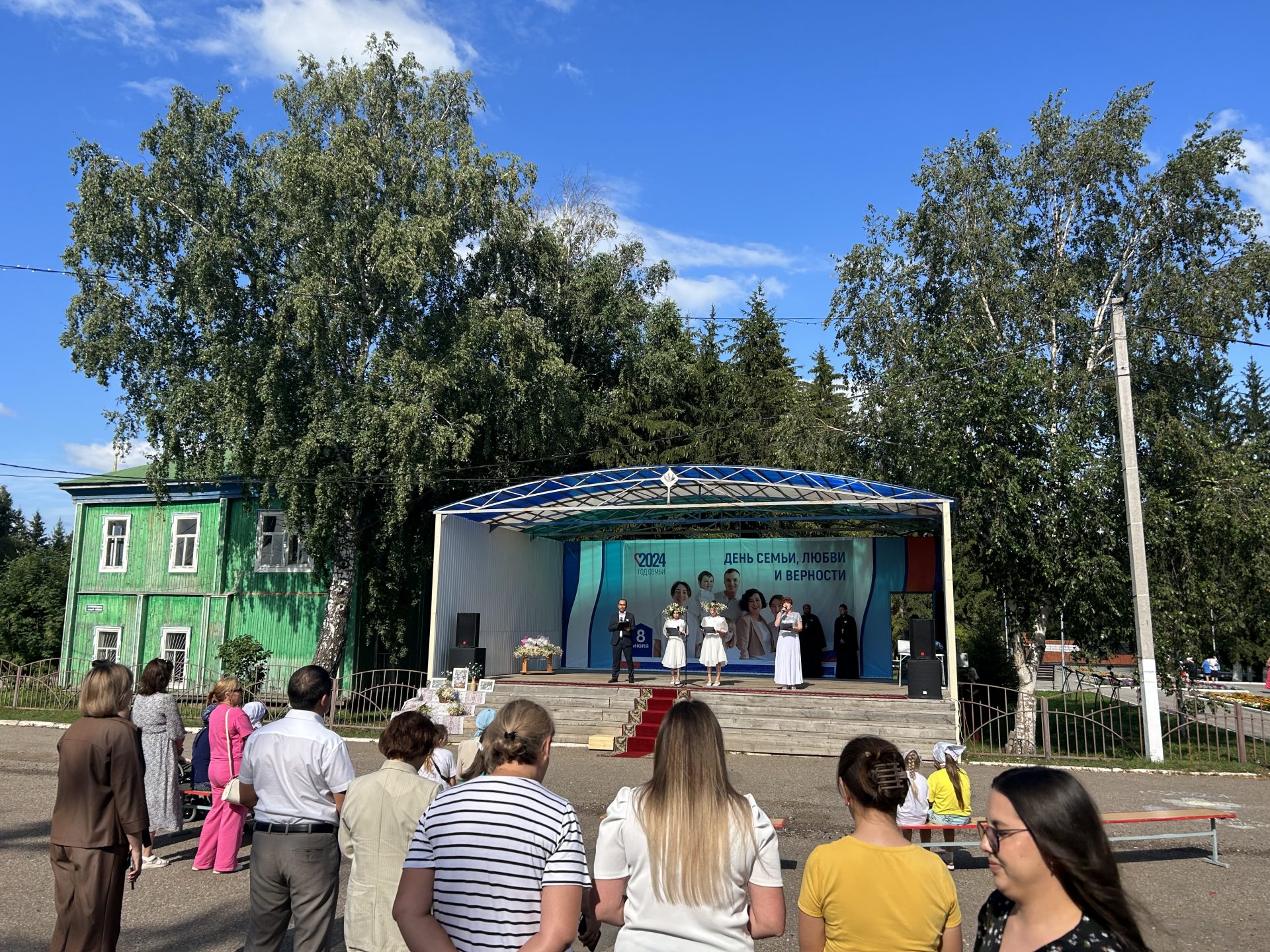 Площадкой для проведения торжественных мероприятий стала главная площадь села. Благословение концерту дал настоятель храма отец Евгений, а Глава администрации района Айрат Саитгалин поздравил супругов с праздником и вручил им поздравительные письма, подарки и цветы, пожелав счастливой и долгой жизни.