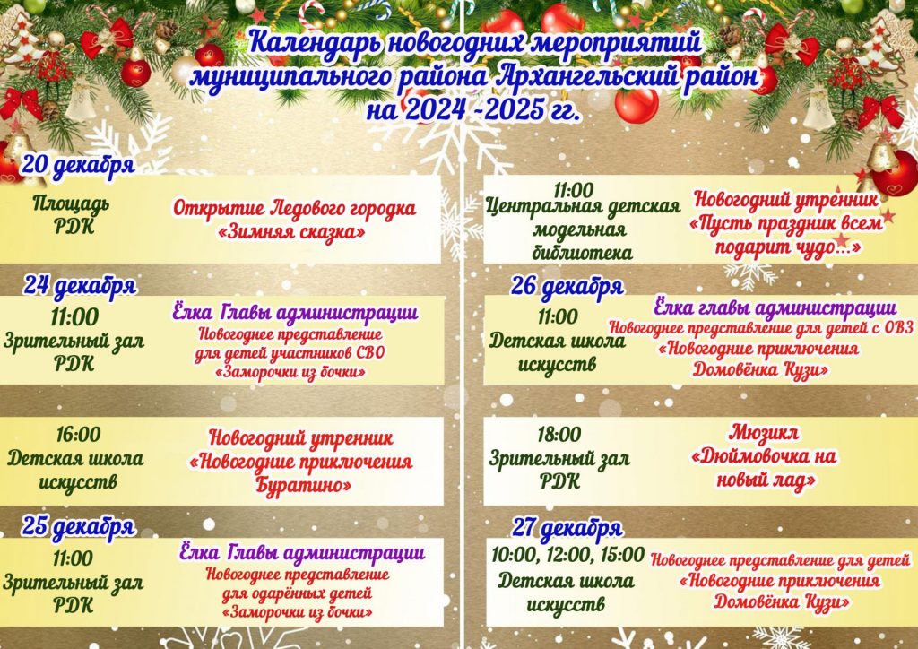 Приглашаем вас на яркие и волшебные мероприятия, которые пройдут в Архангельском районе в дни новогодних каникул!