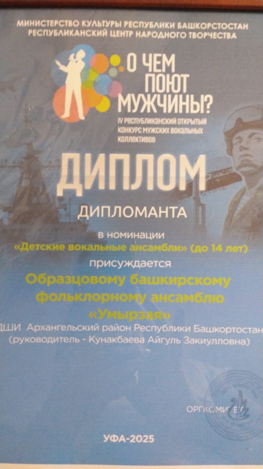 Отдельного внимания заслуживает образцовый башкирский фольклорный ансамбль “Умырзая” (руководитель Айгуль Кунакбаева), который также блестяще выступил на конкурсе и стал дипломантом в номинации “Детские вокальные ансамбли”. Их выступление было полным искренности и задора, что не могло оставить равнодушными зрителей.