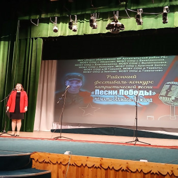 13 марта на сцене Районного Дворца культуры разгорелся пламень патриотизма. В рамках фестиваля-конкурса патриотической песни «Песни Победы», посвященного памяти Алмаса Хужина, на сцене выступил творческий коллектив МКУ Отдел образования. Это мероприятие стало настоящим праздником музыки и патриотизма, объединившим сердца и умы людей, стремящихся сохранить память о героизме и мужестве тех, кто отдал свои жизни за свободу и независимость нашей страны.