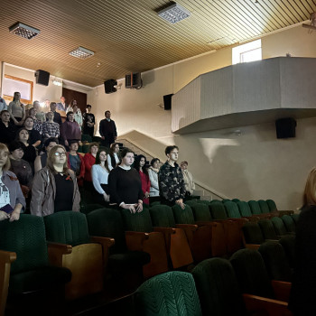 В 10:50 раздался сигнал, и зал погрузился в тишину. Эта минута молчания стала символом единства и солидарности, напоминанием о том, что память о героях должна жить в сердцах каждого из нас. В этот момент можно было услышать только тихие вздохи и шорох одежды, когда люди мысленно возвращались к страницам истории, вспоминая своих родных и близких, которые не вернулись с полей сражений.
