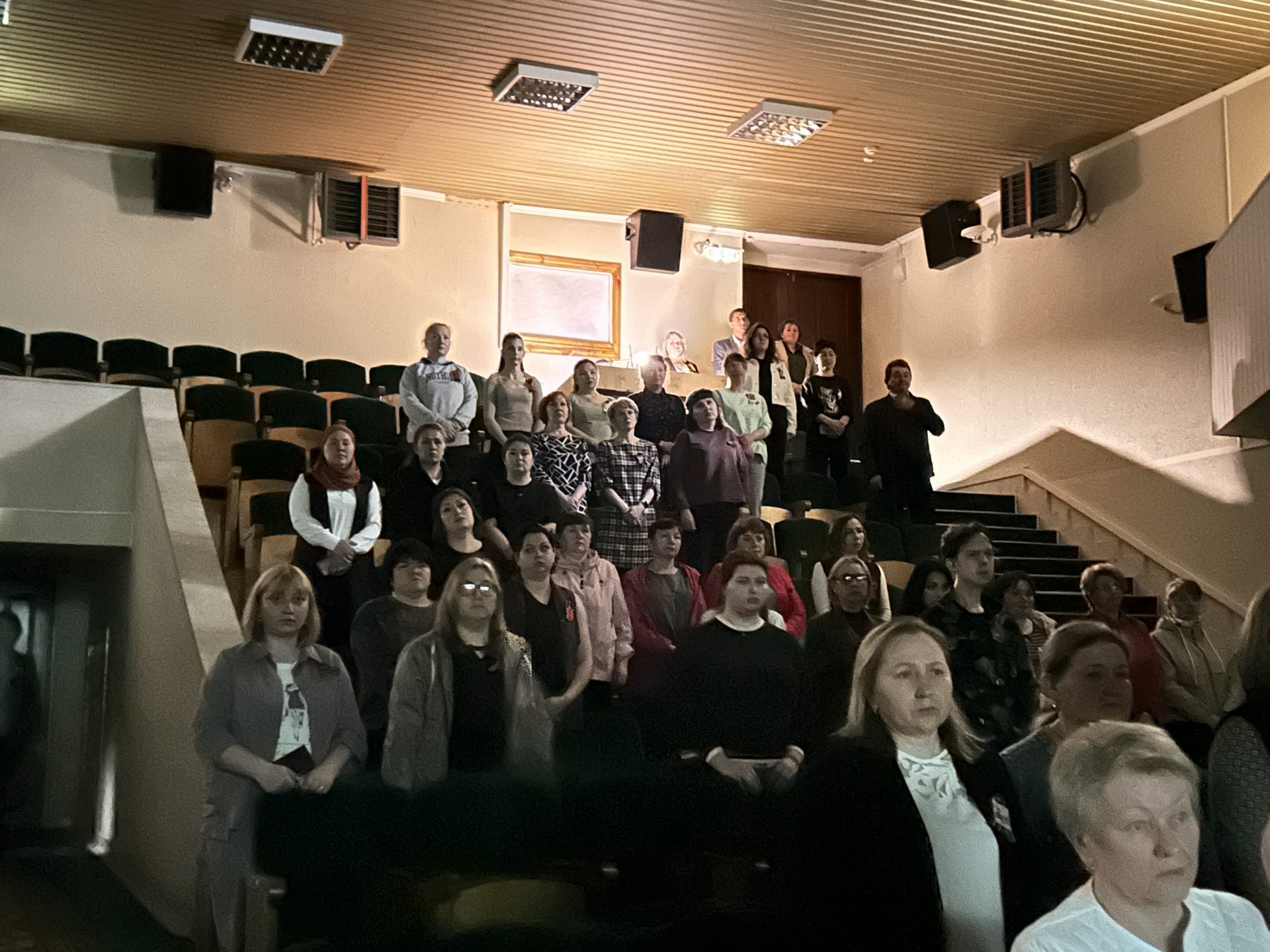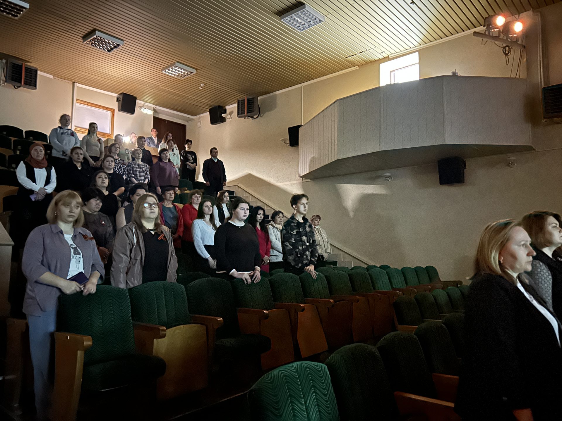 Зал был наполнен атмосферой серьезности и сосредоточенности. Люди, пришедшие на мероприятие, понимали, что этот момент — не просто формальность, а возможность выразить свою благодарность и почтение тем, кто сражался на фронтах, кто трудился в тылу, кто пережил горечь утрат и страданий. Время остановилось: все присутствующие замерли в ожидании.