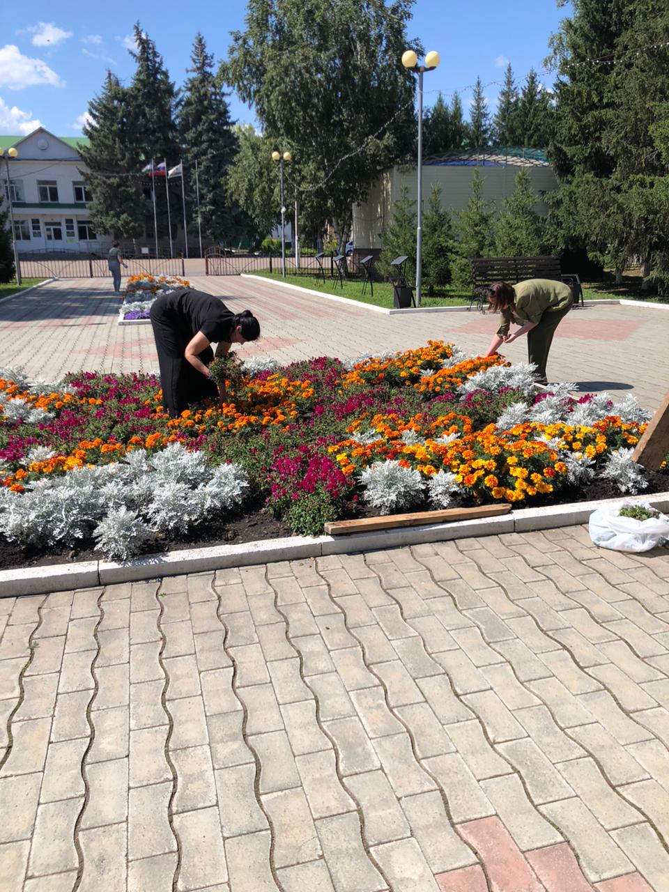 Особое внимание было уделено цветочным клумбам. Работники Дворца культуры с тщательностью и заботой пропололи растения, освободив их от надоедливых сорняков. Каждая клумба, каждый цветочный куст, каждый росток – получил должный уход, что несомненно отразится на их пышном цветении в ближайшее время.