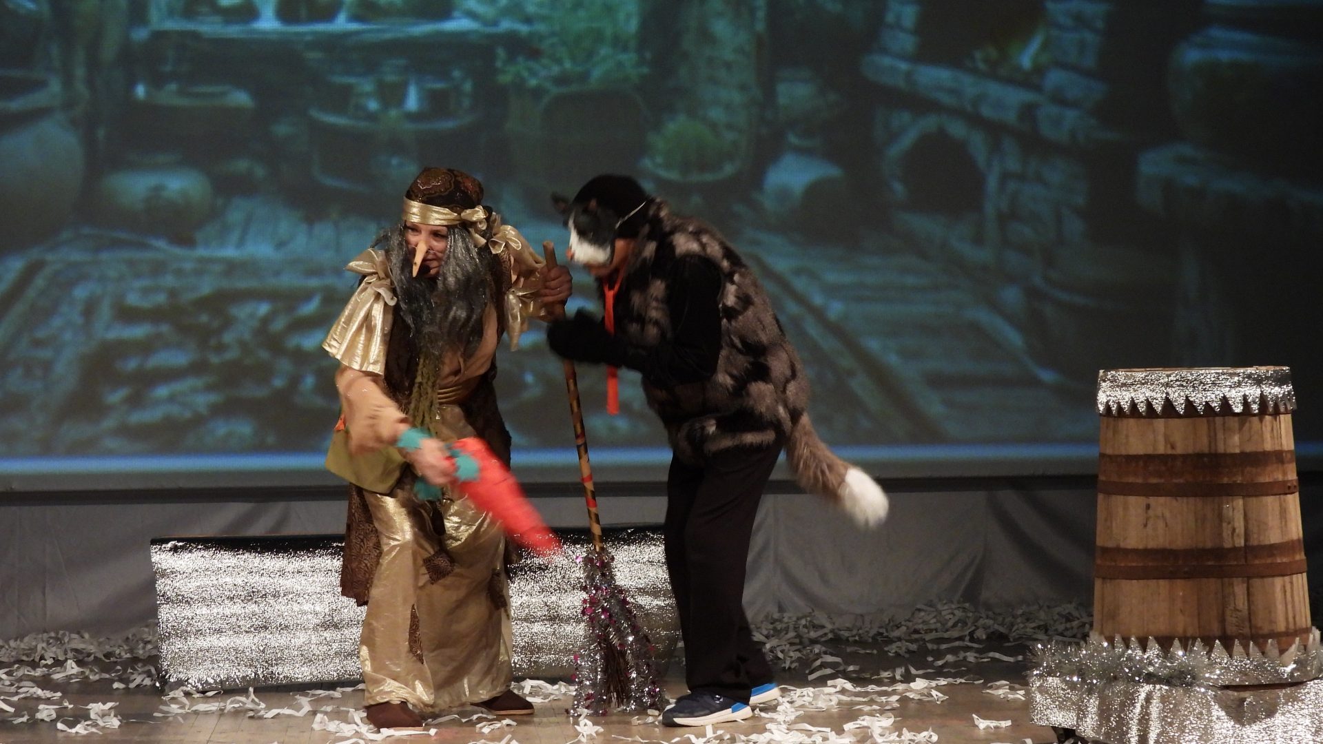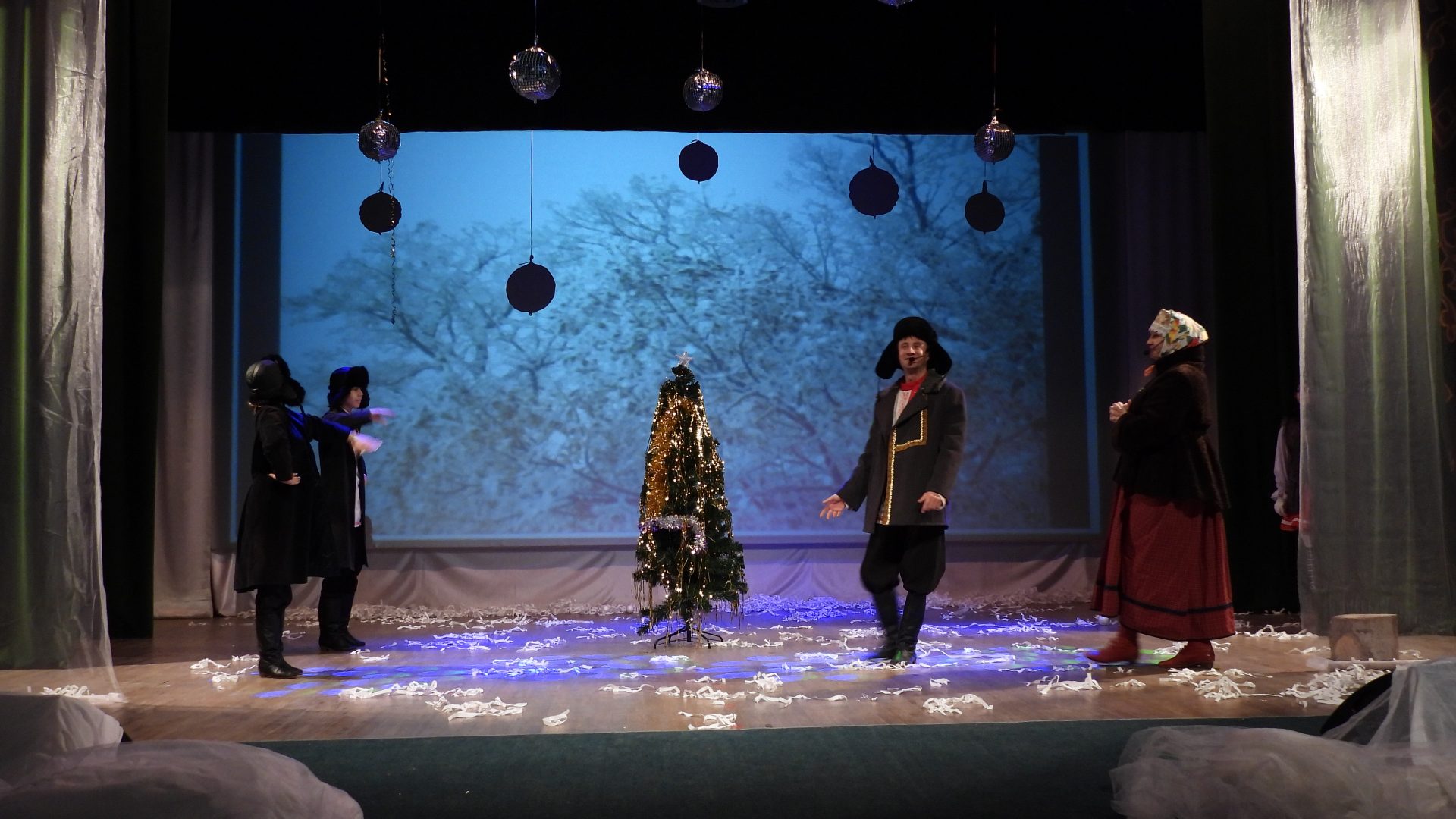 В этот день работники Районного Дворца культуры постарались сделать все, чтобы погрузить юных гостей в настоящую новогоднюю сказку. На сцене ожила история под названием «Как-то раз под Новый год». Яркие костюмы, увлекательный сюжет и талантливая игра актеров перенесли детей в мир фантазии, где добро всегда побеждает зло, а чудеса случаются на каждом шагу.