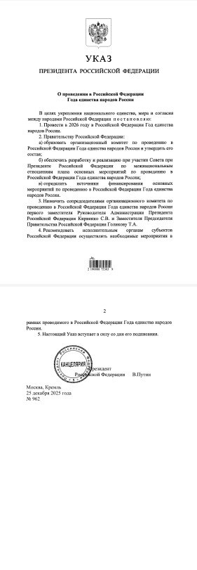 Главная / Новости / По решению президента РФ Владимира Путина 2026 год объявлен Годом единства народов России! По решению президента РФ Владимира Путина 2026 год объявлен Годом единства народов России!