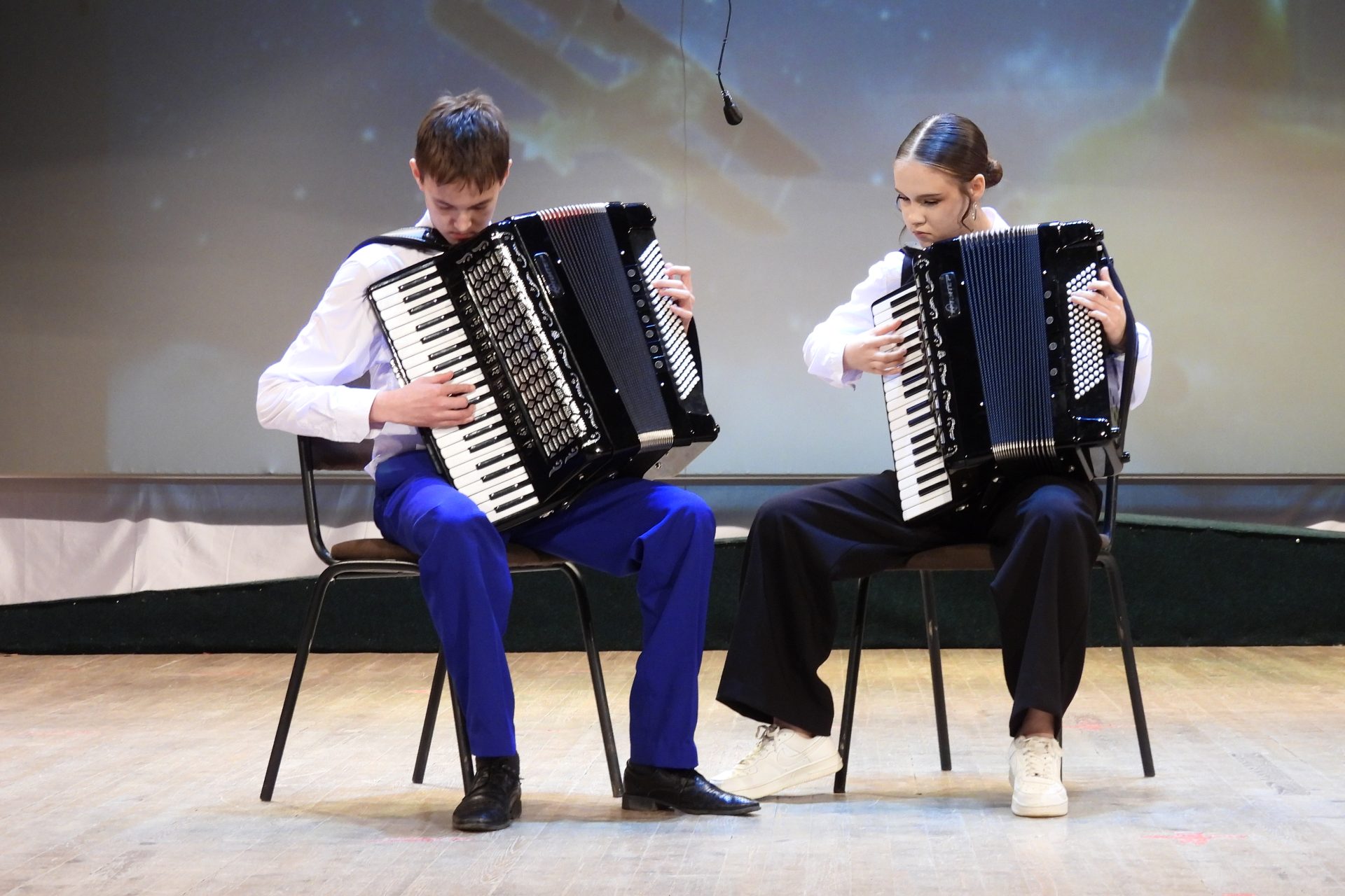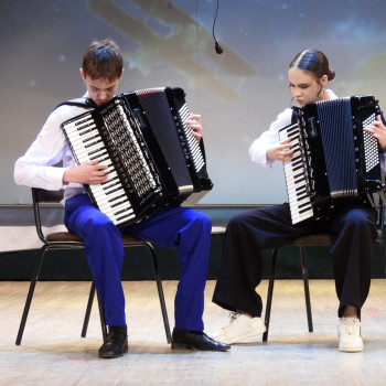 Инструментальный дуэт обучающихся 8‑х классов исполнил музыкальную композицию «Маленький принц». Нежное звучание инструментов тронуло сердца зрителей и добавило в программу ноту лиризма и утончённости.