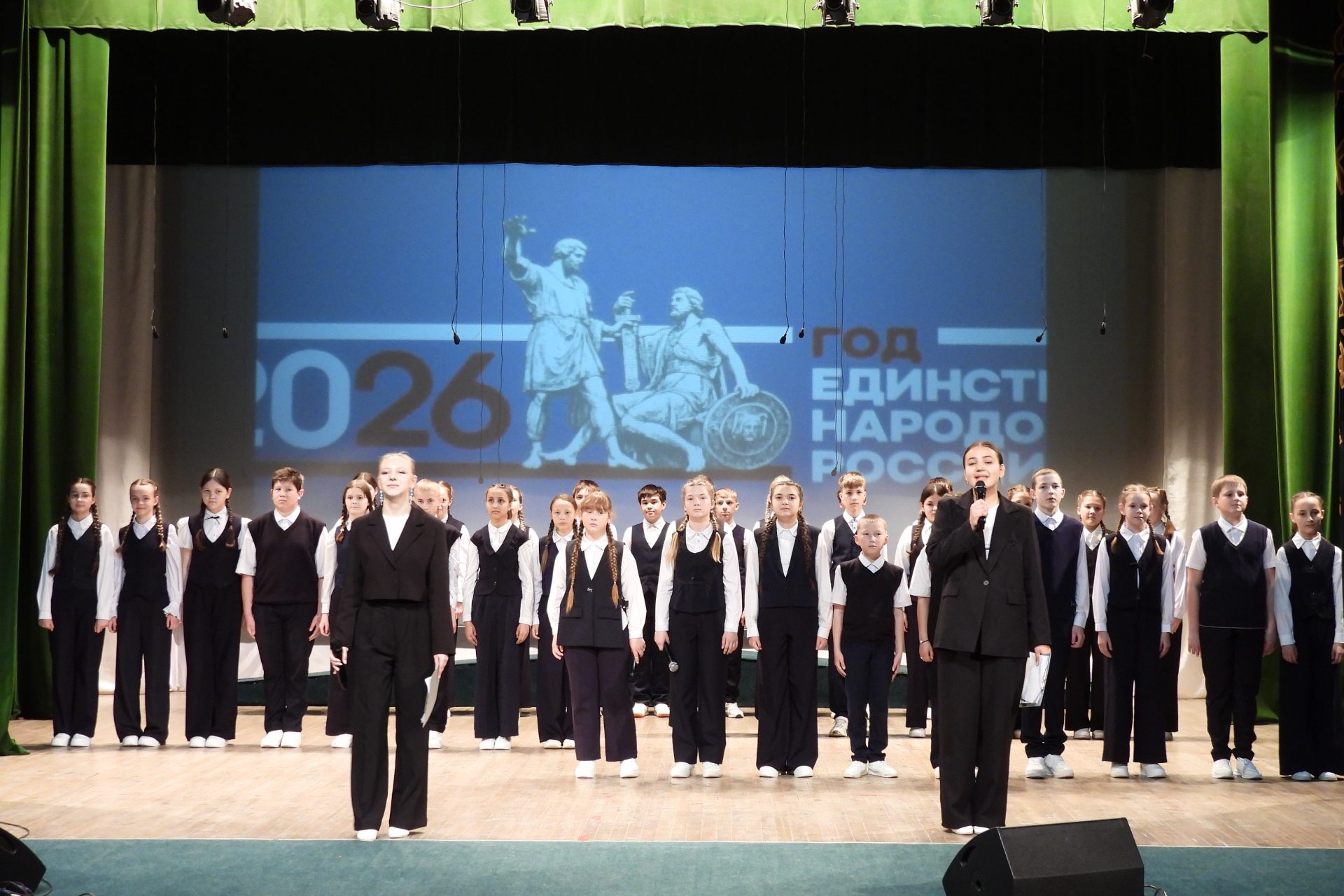 Ярким моментом программы стала вокально‑хореографическая группа обучающихся 4–11 классов с композицией «Во поле берёза стояла». Сочетание народной мелодии и танца напомнило зрителям о глубине и красоте русской культуры.