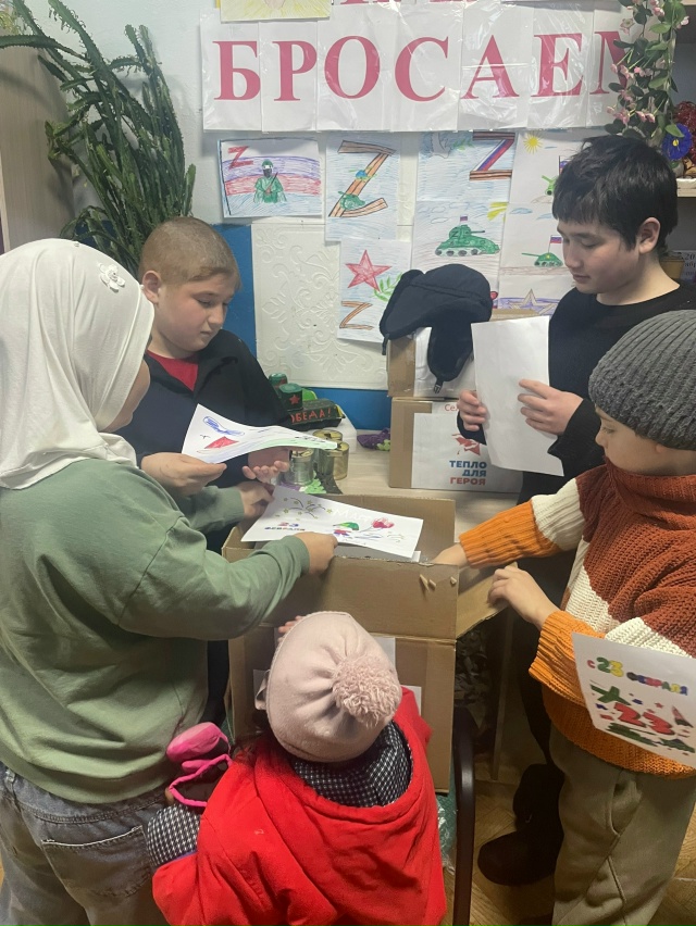 Перед началом творческой работы ребятам рассказали о наших бойцах — участниках СВО из нашего села. Юным участникам акции объяснили, в какой сложной обстановке живут и действуют защитники, и почему сейчас особенно важно оставаться едиными, сохранять уважение и заботу к своим соотечественникам.